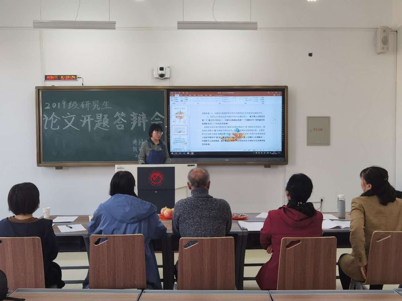 2019级硕士研究生依次上台对自己开题报告中涉及的课题来源及意义、国内外研究现状、主要研究内容、研究方法、论文框架等问题进行了阐述。评委根据每位同学所阐述的信息和开题报告的内容,从选题的来源、重要概念的界定、论文整体的构思和框架结构等方面,对答辩同学提出了专业的意见和改进的方法。
