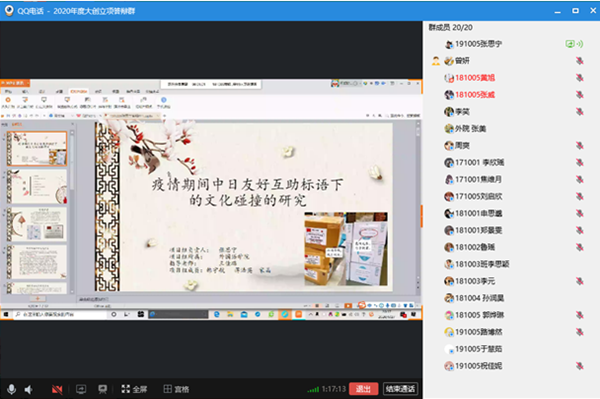 新闻网讯(通讯员 张美) 6月27日星期六19:00开始,beat365唯一官网通过QQ屏幕共享在线进行了2020年度“大学生创新创业训练计划”项目的立项答辩工作。教学院长周爽出席答辩会,日语系主任曾妍、英语系书记李笑、俄语系主任张美担任此次立项答辩的专家评委。