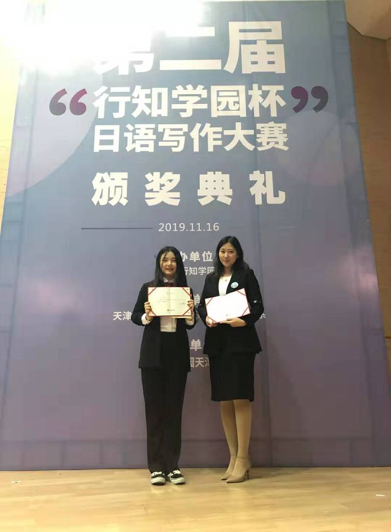 讯员李雨晴为了加强中日两国的积极往来,促进中日文化交流与发展,由行知学园主办、行知学园天津校协办、天津外国语大学滨海外事学院日语系承办开展了第二届行知学院杯日语写作大赛。在本次大赛中,我院2017级日语专业学生李雨晴荣获“专业组二等奖”的优异成绩,其指导教师渡部惠老师荣获“优秀指导教师奖”。1116日上午10点,李雨晴同学与渡部惠老师赴天津外国语大学参加了颁奖典礼。
