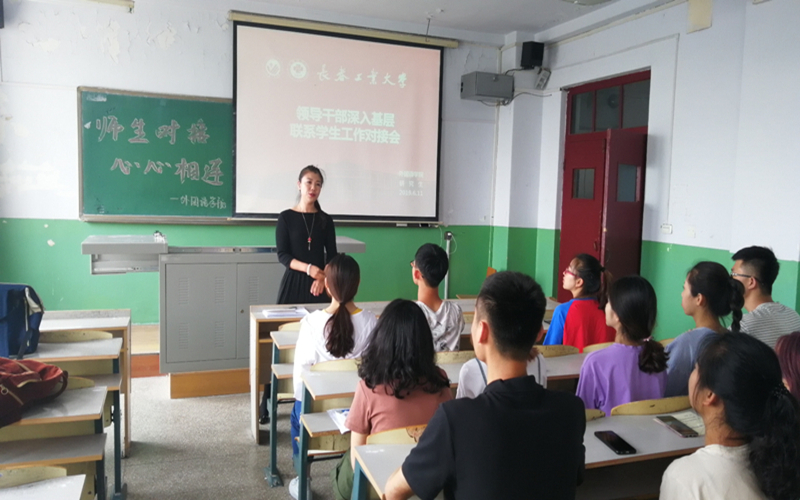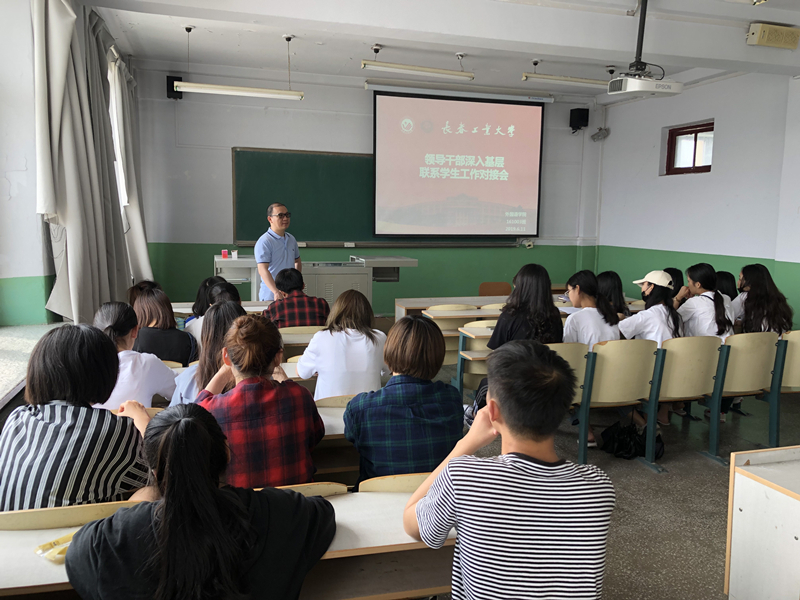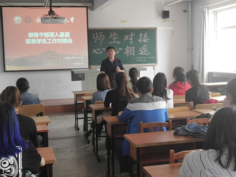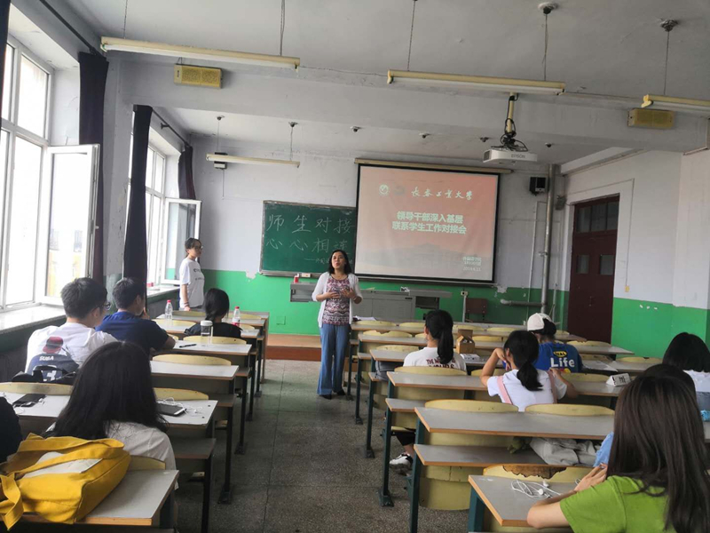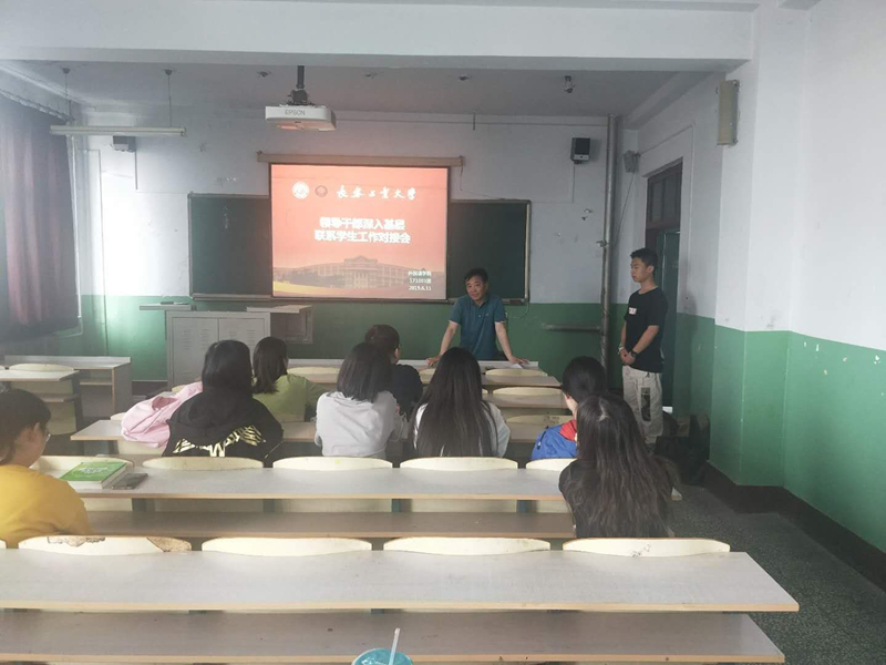 2019年6月11日,为深入贯彻落实习近平总书记在高校思想政治工作会议上的讲话精神、全国教育大会精神和中央31号文件精神,按照学校党委《关于加强和改进高校领导干部深入基层联系学生工作的通知》精神,学校党委副书记李雁冰、学生工作部部长周文军、研究生工作部部长范琳琳、学生工作部副部长肖永辉、大学生心理健康与咨询管理中心主任张丽波、学生工作部宿舍管理科科长王占吉以及beat365唯一官网班子成员和科级以上领导干部与beat365唯一官网基层班级对接,着力构建“三全育人”思想政治工作体系。