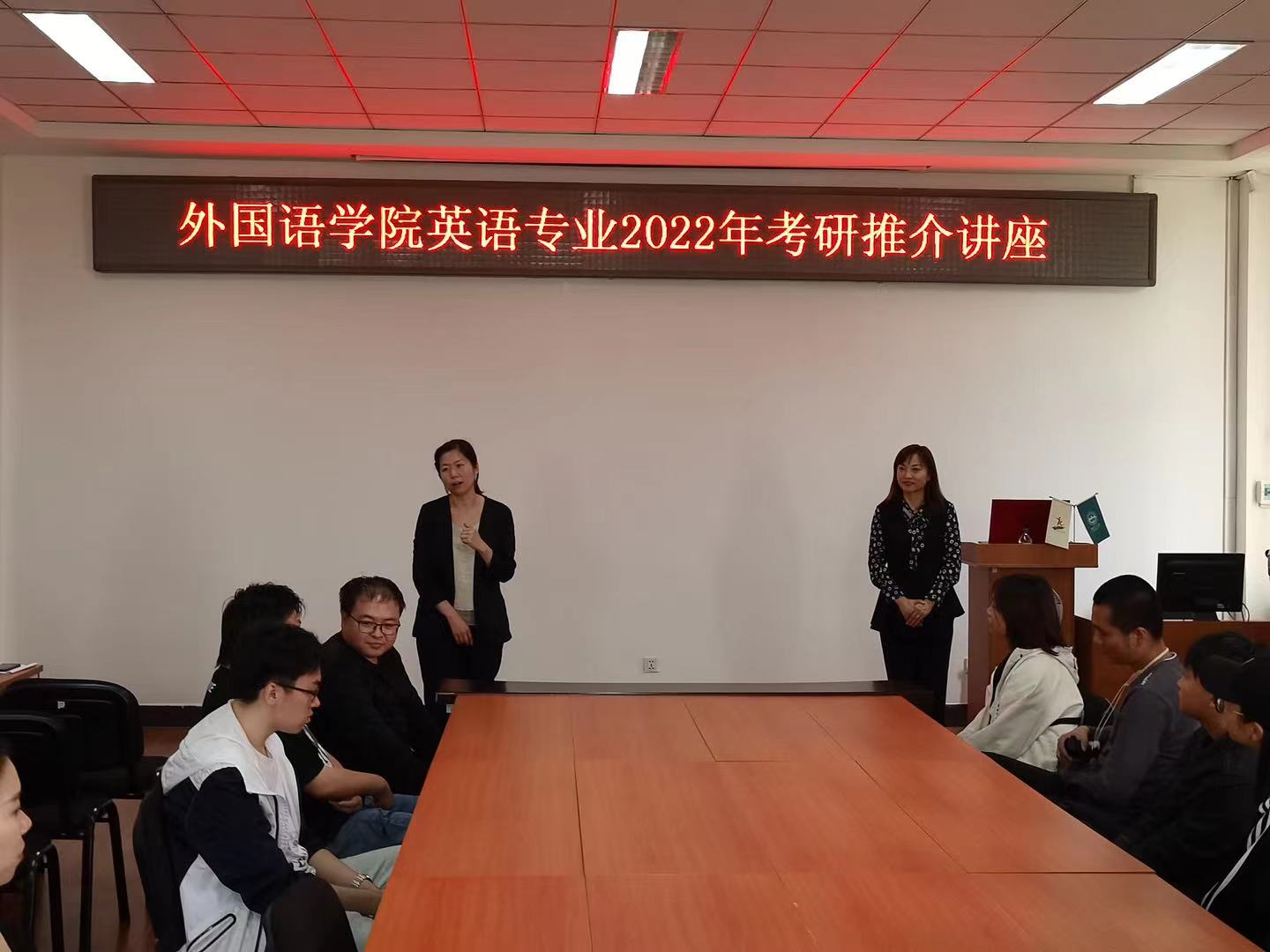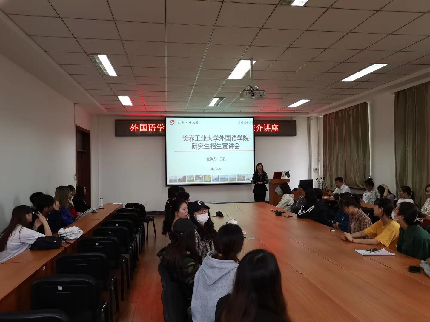 新闻网讯(通讯员 曾妍)9月7日下午,副院长王轶、曾妍赴吉林农业大学开展考研招生宣讲。吉林农业大学beat365唯一官网院长张景伟、党委副书记赵云昌、副院长刘伟及英语专业2018级全体学生参加了此次宣讲会。