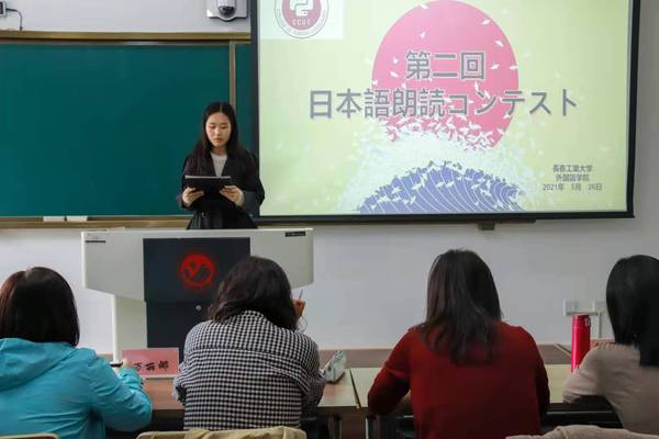 本次大赛共48位参赛选手,按照顺序依次上台朗诵日语文章,由评委老师根据选手的语音、语调、语速及日语表达流畅程度等进行评分。