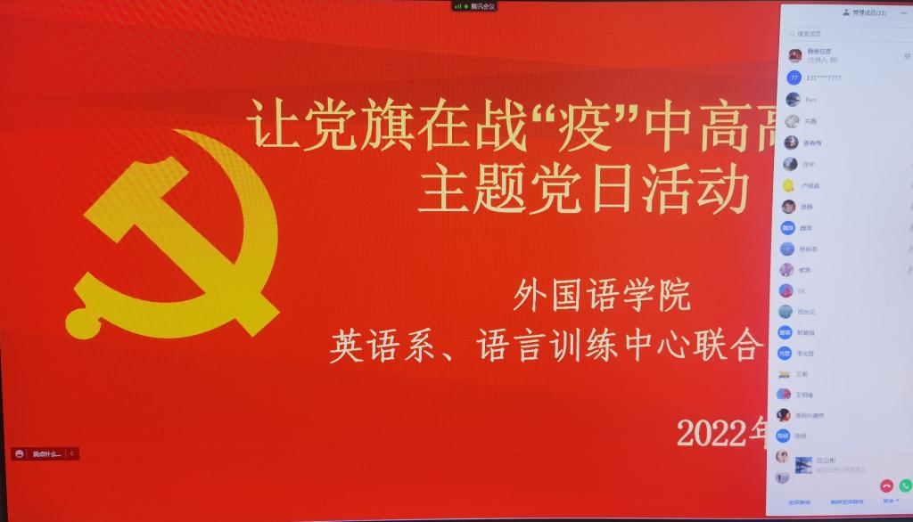 新闻网讯(通讯员 葛蔓)为进一步发挥党支部和党员作用,切实抓好疫情防控工作,beat365唯一官网党委组织各党支部开展了“让党旗在战‘疫’中高高飘扬”主题党日活动,全体党员参加了此次线上活动。