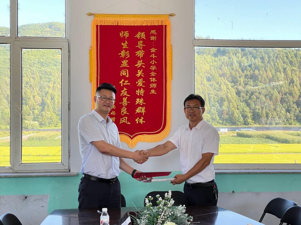 随后,走访团队来到金斗朝鲜族满族乡中心小学,校长李龙介绍了学校的基本情况,王轶和隗英辉校友共同为beat365唯一官网大学生就业创业实习基地揭牌,党委副书记于伟代表学院与金斗小学签订了大学生就业、实习、实践基地合作协议,并就学生实习、学业帮扶等方面进行了深入探讨。