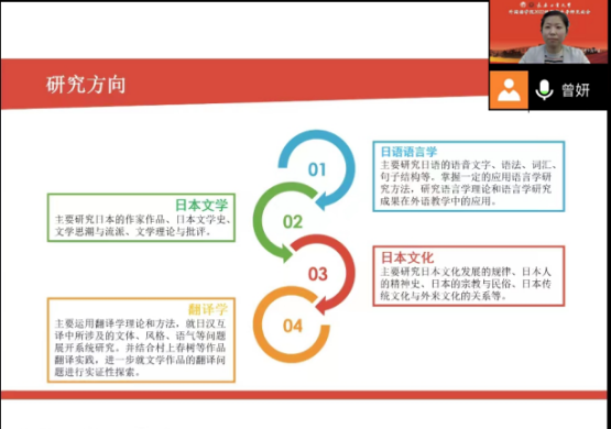 然后,从师资力量、学科简介、本学科方向的优势、学生就业和研究生培养这五个方面,对日语语言文学专业进行了详细地讲解,对研究方向、课程设置、研究生培养方案等进行了清晰地解读。最后,与研究生们进行了亲切地交流,解答同学们有关研究生学习生活方面的疑问。日语语言文学专业入学教育活动圆满完成。