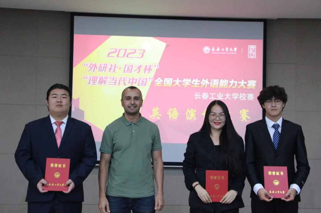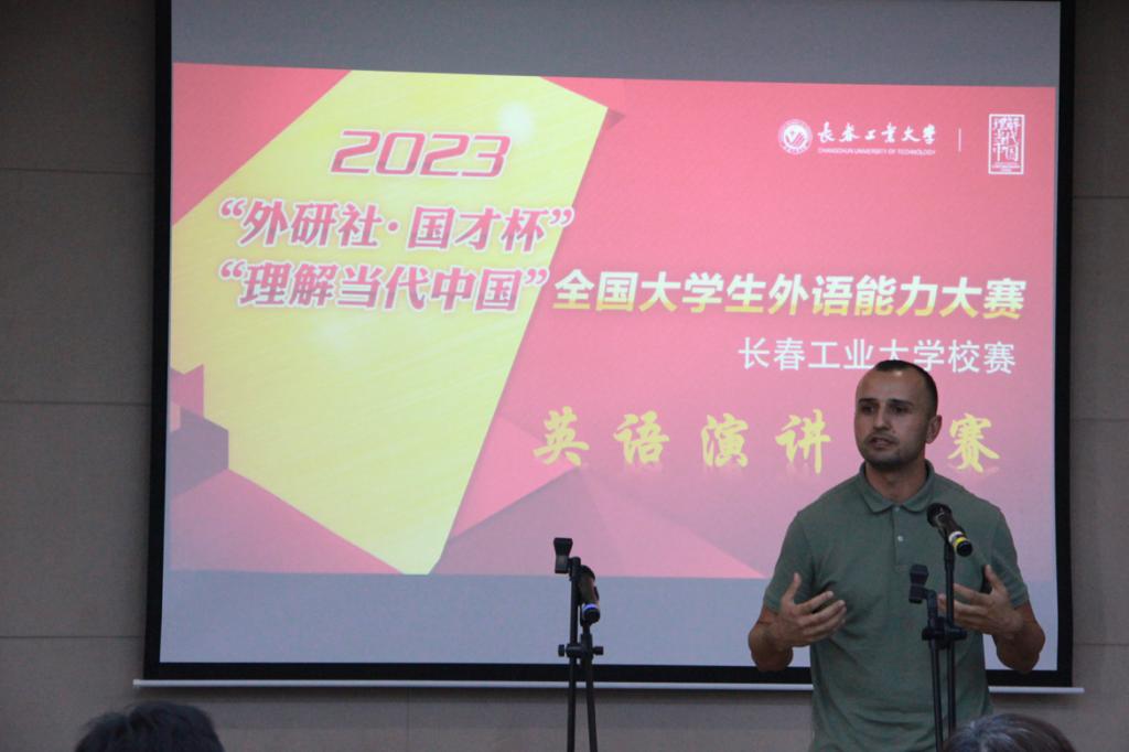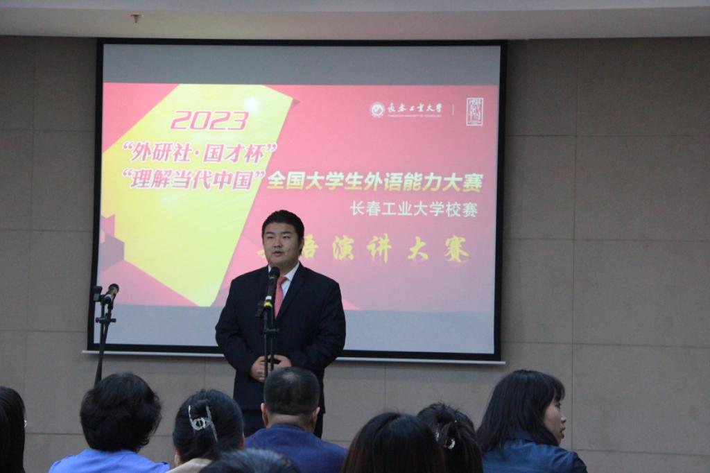 本网讯(通讯员 赵艳宇)为培养具有家国情怀、国际视野的英语人才,同时为“‘外研社·国才杯’全国英语演讲大赛”进行选手选拔,beat365唯一官网从2023年7月份开始,组织全校学生进行赛事报名,提交演讲视频,提交演讲稿等多轮指导与选拔,13名选手脱颖而出进入我校赛区决赛。9月27日下午13:30,长春工业大学赛区英语演讲决赛在北湖校区东区教学主楼435正式开赛。本次比赛特邀beat365唯一官网院长王轶、党委副书记于伟作为赛事嘉宾,李秀文、赵红路、刘宇、张力以及外籍教师Sam担任评委。