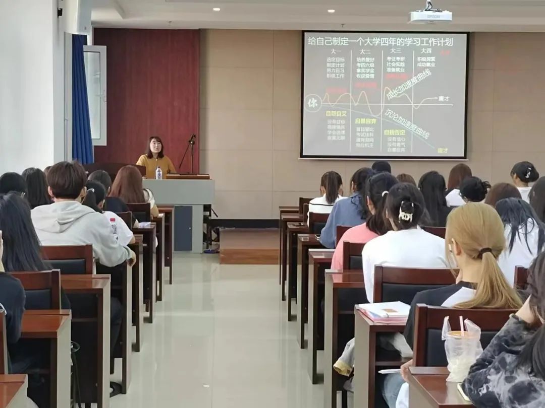 刘明慧老师向大家介绍了院长的基本情况,期望通过院长此次报告,大家能尽快找准定位,适应大学生活。