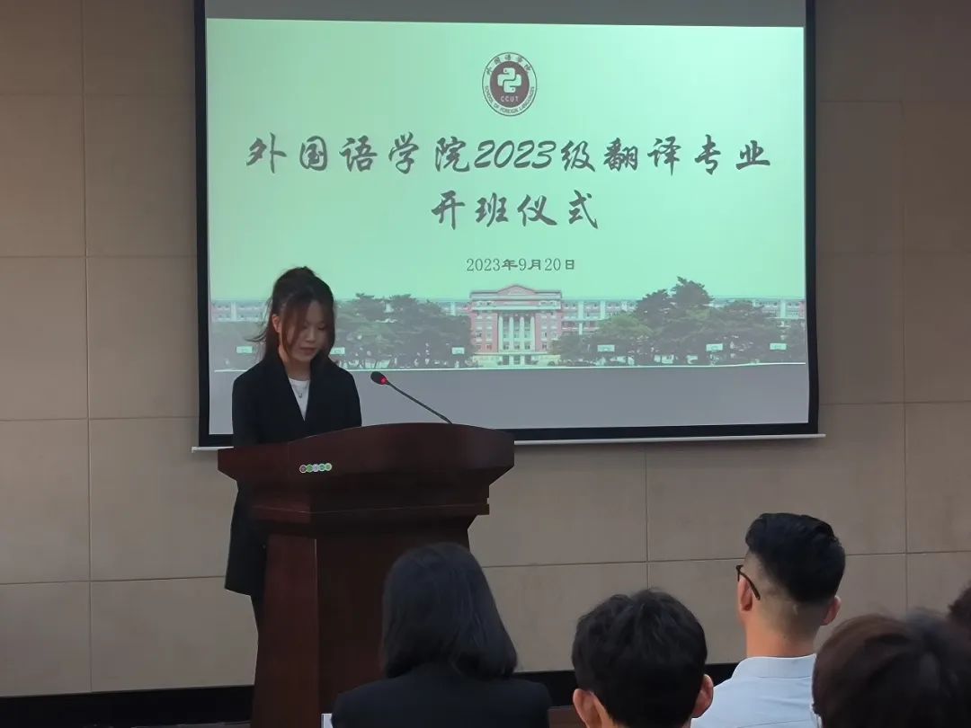 本次2023级新生入学教育的翻译专业介绍会暨开班仪式,为新生增强专业认知、培养专业兴趣和强化专业意识打下了良好基础。希望通过此次入学教育,同学们能明确自身专业的定位,坚定目标与理想,在未来四年的学习中,定能不负时代,不负青春,奋斗出属于自己的精彩,写下绚丽的人生华章!