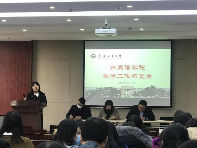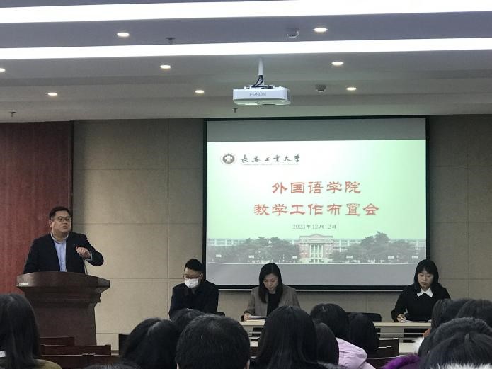 王轶院长传达了学校迎接本科教育教学审核评估专家组入校评估工作布置会精神,详细说明了学院线上评估的基本情况,在此基础上加强学习和借鉴助力新一轮审核评估。她指出,专家组入校评估是线上评估的补充与深化,是进一步对存疑之问题进行重点求证,以形成对学院本科教学工作全面、客观、准确、公平、公正的评价,因此更要注重专家入校评估工作。随后对学院整体迎评准备工作作出了具体部署,并带领全体教师巩固学习了长春工业大学本科考试工作条例,强调期末监考纪律。