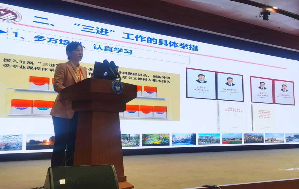 在省内各高院交流环节,王轶院长代表长春工业大学关于我校“三进”工作做了经验分享。我校不仅在各项课程中积极使用并融入《理解当代中国》系列教材,还利用教育部虚拟教研室和吉林省“三进”虚拟教研室培训教师,开展集体备课活动,积极研讨,融入日常教学生活。通过教学观摩、院校交流、科研融合、鼓励教师参加各种课程思政教学大赛、组织学生参加各种外语技能大赛等多举并进,提升教学质量,优化育人成效,通过以赛代练提升学生用外语讲好中国故事的能力。