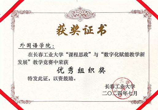 我院对此高度重视,积极组织学院教师参加,最终由英语系赵艳宇老师、日语系贾鹤老师、俄语系梁梦洁老师代表学院参赛,三位教师于6月17日-6月26日完成了四个专题的线下培训和10学时的线上培训,均以满分的平时成绩进入现场教学评审阶段,我院凭借出色的组织能力在此次比赛中荣获优秀组织奖。
