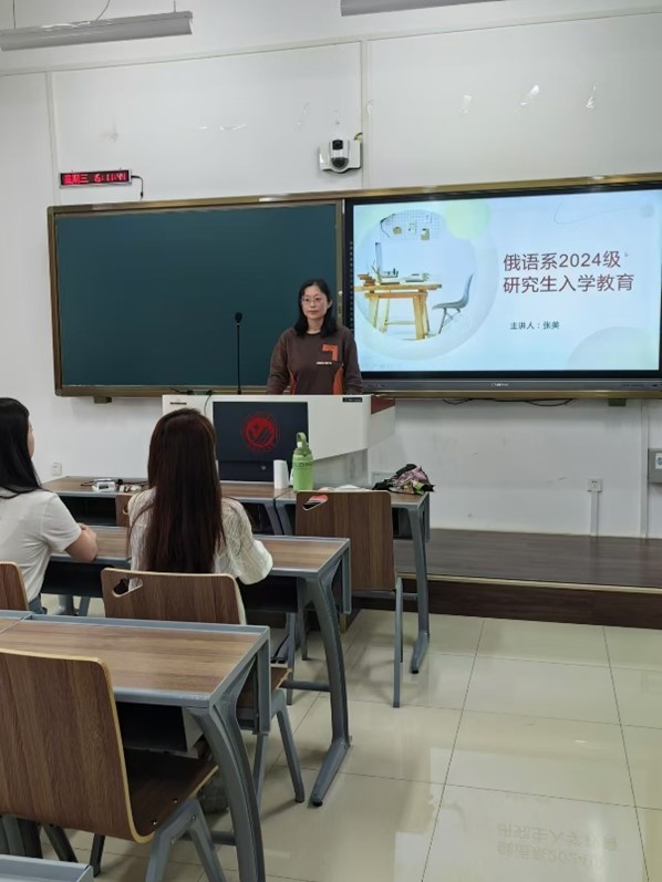 导师见面会后,副院长曾妍、俄语系主任张美、英语系主任刘宇分别给四个专业的研究生开展了“新生入学教育”,详细介绍了各专业的基本情况、课程设置、研究生培养、奖助体系、学生就业等内容,指导研究生确立学习目标,制定个人学习计划。