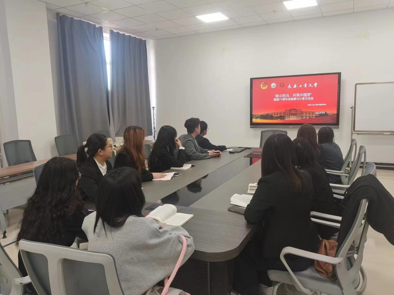 本网讯(通讯员 谭密)为热烈庆祝中华人民共和国成立75周年,重温峥嵘岁月,赓续红色血脉,培育学生的爱国主义精神,扎实推进爱国主义教育实践,9月21日,学院党委组织入党积极分子和发展对象观看庆祝中华人民共和国成立75周年“初心不改,逐梦前行——致敬七十五载光辉历程”纪录片。