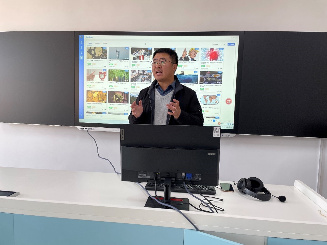然后,辽宁一课科技有限公司讲师金钊为我院教师讲解了“OneClass外语教学系统”的使用方法,以及该系统如何辅助教师进行外语听力、同声传译、交替传译等课程教学。