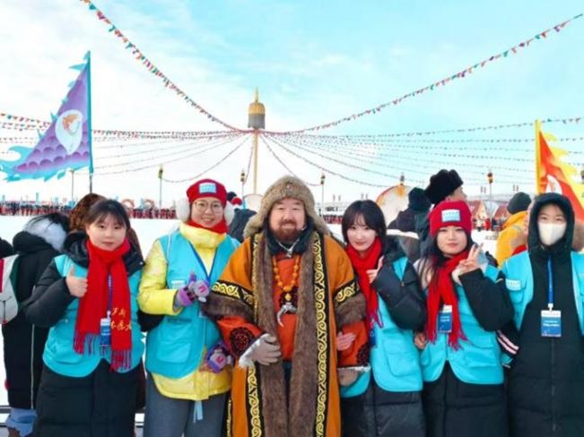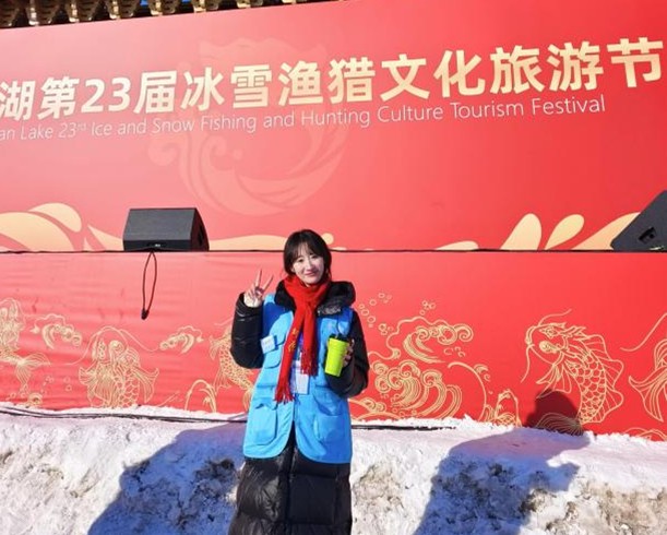 本网讯(通讯员 王 琴)习近平总书记高度重视发展冰雪经济,多次强调“要牢固树立绿水青山就是金山银山,冰天雪地也是金山银山的理念”。2024年12月28日,查干湖第23届冰雪渔猎文化旅游节在银白的湖面上盛大举行,我院学子金一鸣积极响应时代号召,投身于查干湖地区的志愿服务活动之中。
