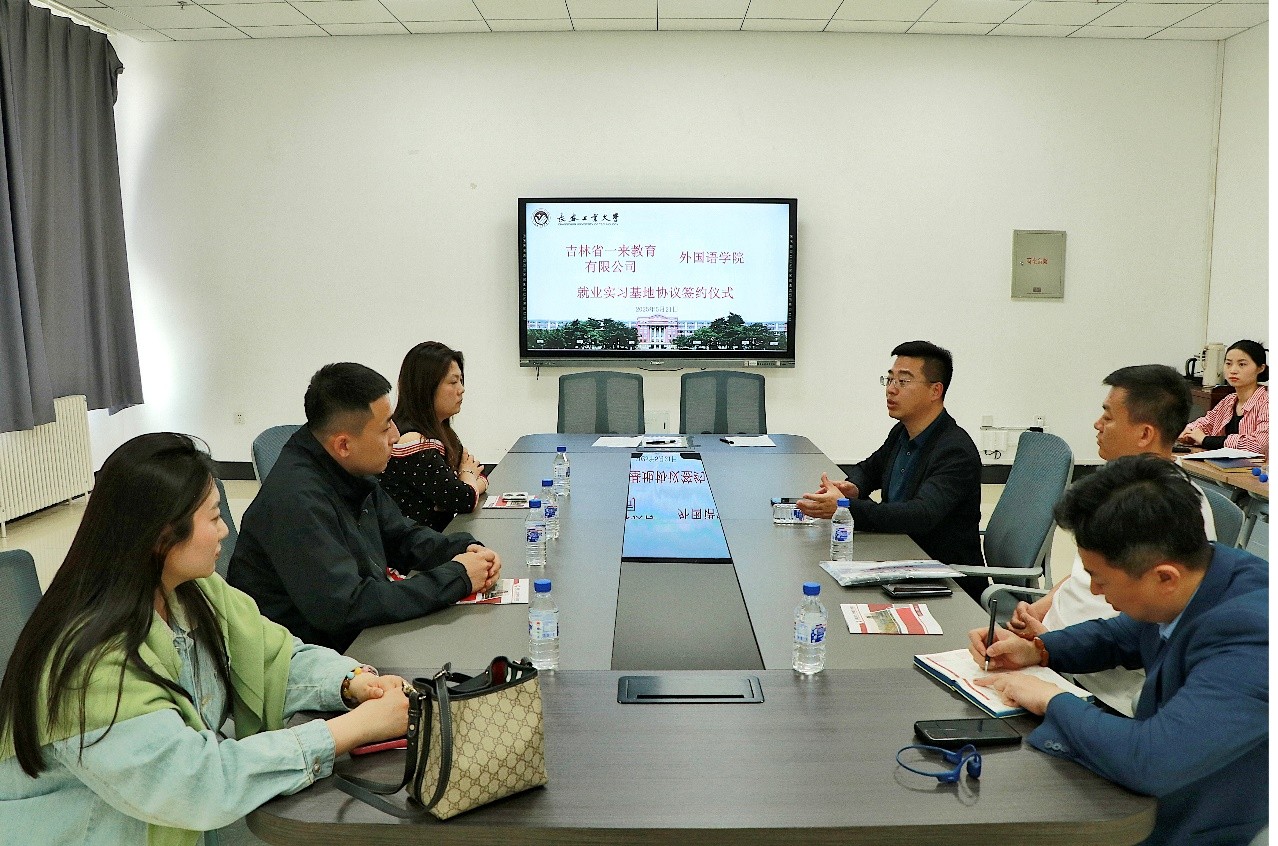 签约仪式上,学院党委副书记刘凤利代表学院与五家企业代表分别签署就业实习基地协议。希望学、迈得峰、一来教育在教育领域深耕多年,拥有丰富的教学资源和先进的教育理念;博大集团作为多元化发展的综合性企业,业务广泛,为外语人才提供了新颖的就业方向;长春承运科技在科技与国际化业务拓展中有所建树,能够让学生接触到行业前沿动态和国际化的工作场景。
