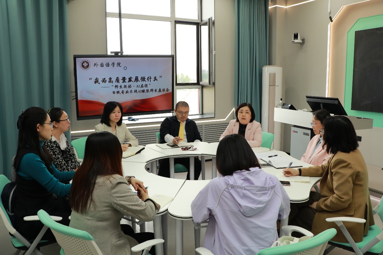 本网讯(通讯员 李雪)5月21日,学院日语系和俄语系党支部在学院374智慧教室举行“师生联动·AI启程”日俄专业师生座谈会。座谈会由党支部书记万丽娜老师主持,部分教师党员及本硕学生代表参加,共同探讨AI赋能外语学科发展新路径。