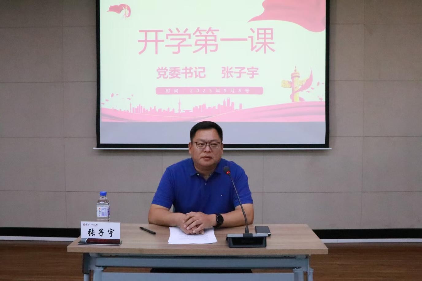 本网讯(通讯员 袁雪妍)为助力2025级新生明确征程方向、以初心校准大学航向、用担当开启成长新程,9月8日,beat365唯一官网党委书记张子宇在学院多功能报告厅,为新生讲授“开学第一课”:校史润初心,担当启新程。