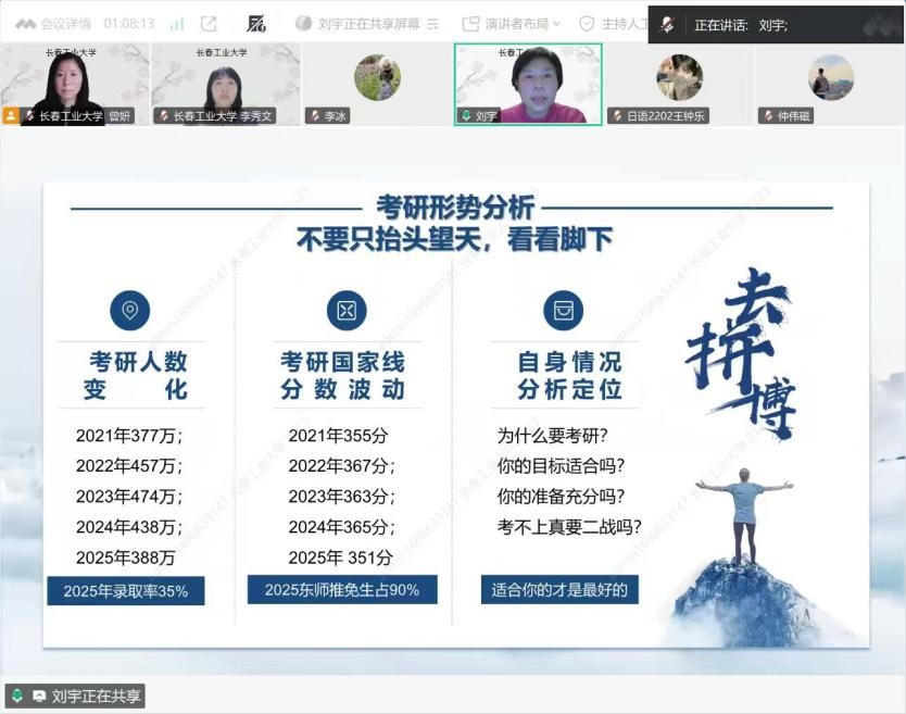 李冰首先致辞,对长春工业大学beat365唯一官网组织此次宣讲会表示热烈欢迎和衷心感谢。同时鼓励在线同学认真聆听、积极互动,充分利用宝贵机会做好考研准备。