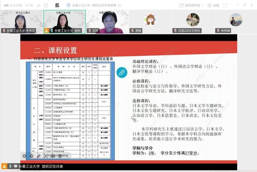 曾妍对日语语言文学方向进行了深入介绍,围绕师资力量、课程设置、学科优势、学生就业以及考研备考建议五个维度展开。通过展示导师团队构成、特色课程体系及毕业生高质量就业案例,为有意报考该方向的学生清晰勾勒出学习路径与发展前景。