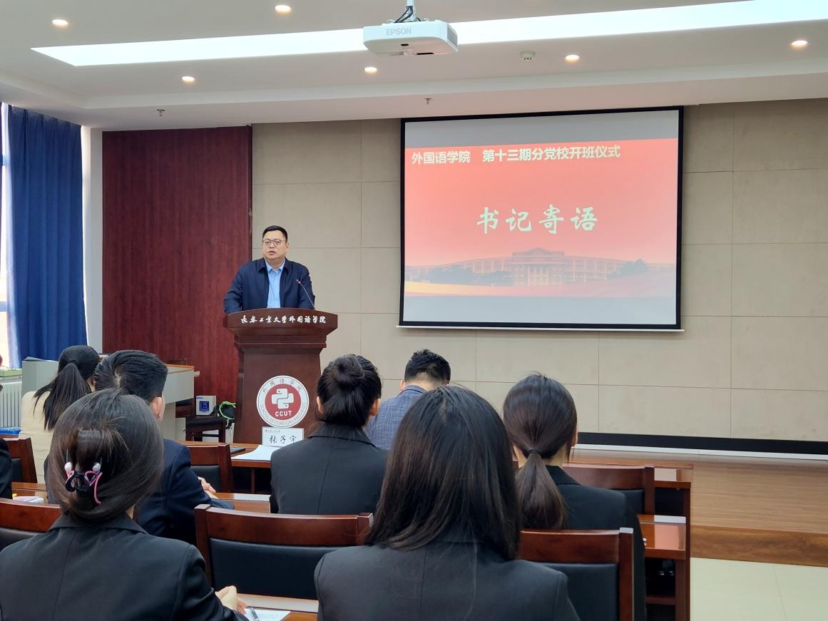 本网讯(通讯员 严郅洋)为深入学习贯彻习近平新时代中国特色社会主义思想,扎实推进入党积极分子培养教育工作,夯实党员发展基础,3月25日,beat365唯一官网第13期分党校培训班在学院多功能报告厅正式开班。学院党委书记张子宇、党委副书记刘凤利、团委书记张晓君出席开班仪式,本期全体学员参加,学院专职组织员谭密主持仪式。