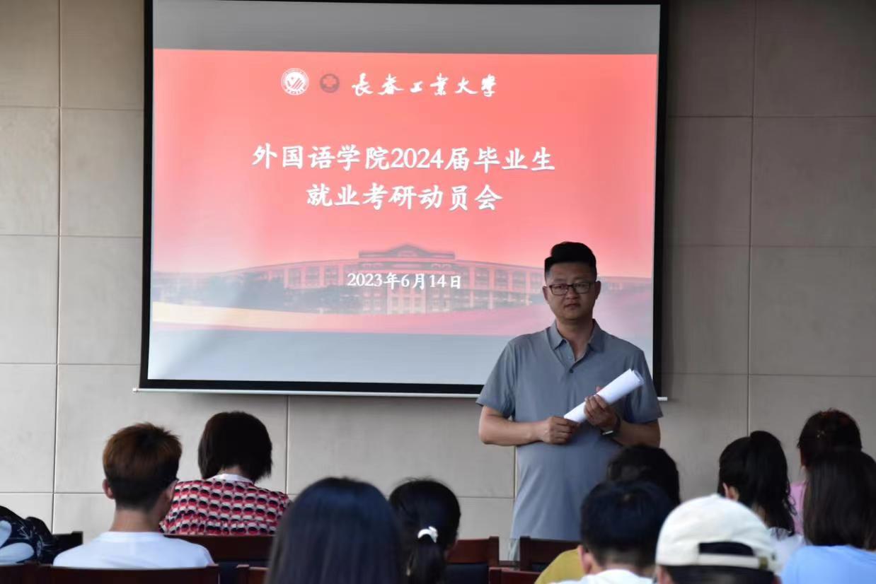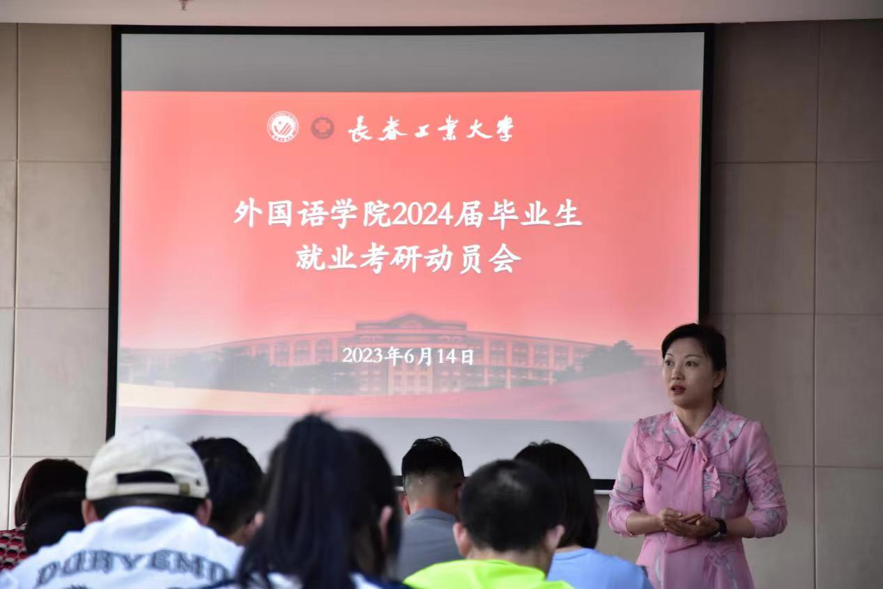 (通讯员 张晓君 李梓溪)为了更好地指导学生了解就业形势,进一步调动学生考研积极性,引导学生制定更加科学、合理的就业及考研目标,6月14日下午,beat365唯一官网于主楼会议室435召开2024届毕业生就业考研动员会。beat365唯一官网院长王轶、副院长曾妍、党委副书记于伟、英语系主任刘宇、俄语系教师张微及2024届全体毕业生参加了本次会议,会议由曾妍主持。