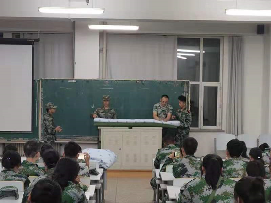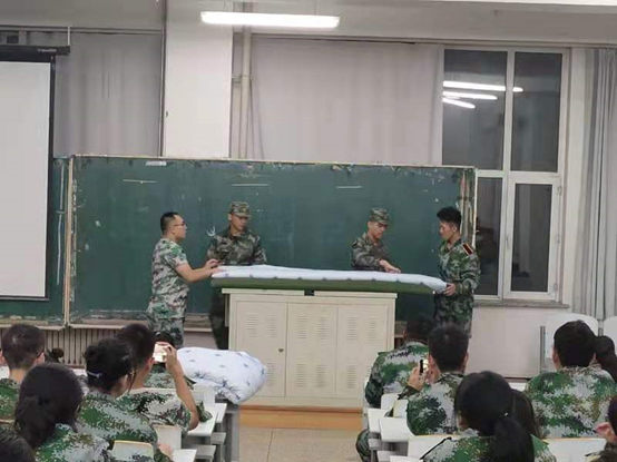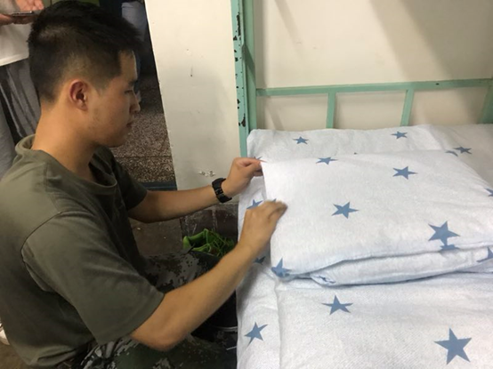 本次活动分为两项,第一项为教官叠军被教学活动。教官指出叠军被的技巧在于“压、量、切、塞、抠。”而后,教官组织了同学们进行分批观摩学习和现场实战。同学们从中掌握了一定的技巧,收获良多。接着,活动进行到第二项,即为内务整理及评比活动。教官们和刘明慧老师带领着生活部成员深入寝室,现场指导,并评选出了标兵寝室。