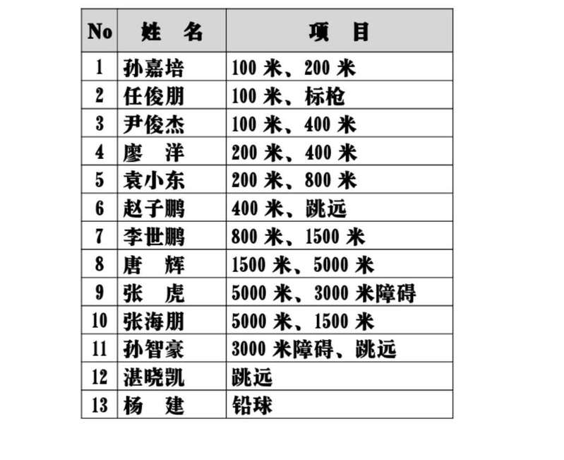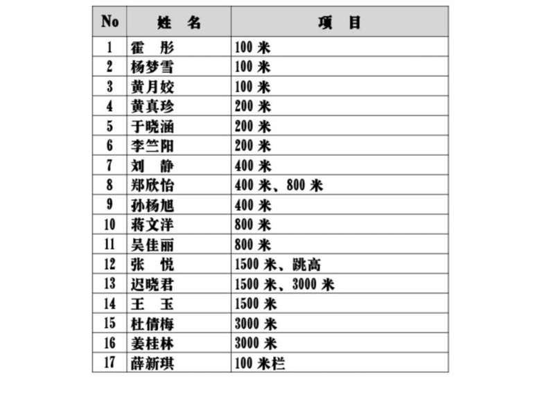 beat365唯一官网第四十届田径运动会参赛人员名单