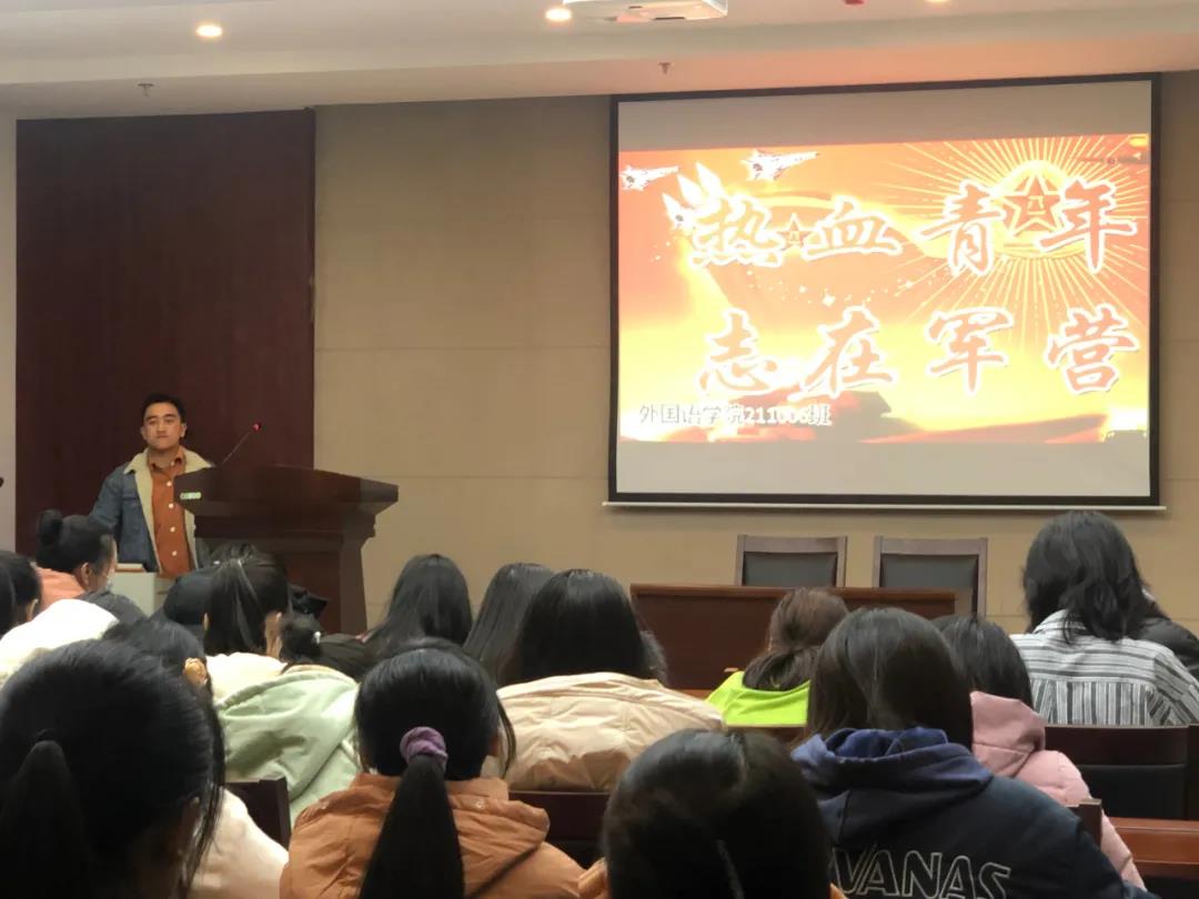 同时,各班召开了主题班会,激励更多志在参军入伍的同学加入军营大家庭挥洒青春,报效国家。
