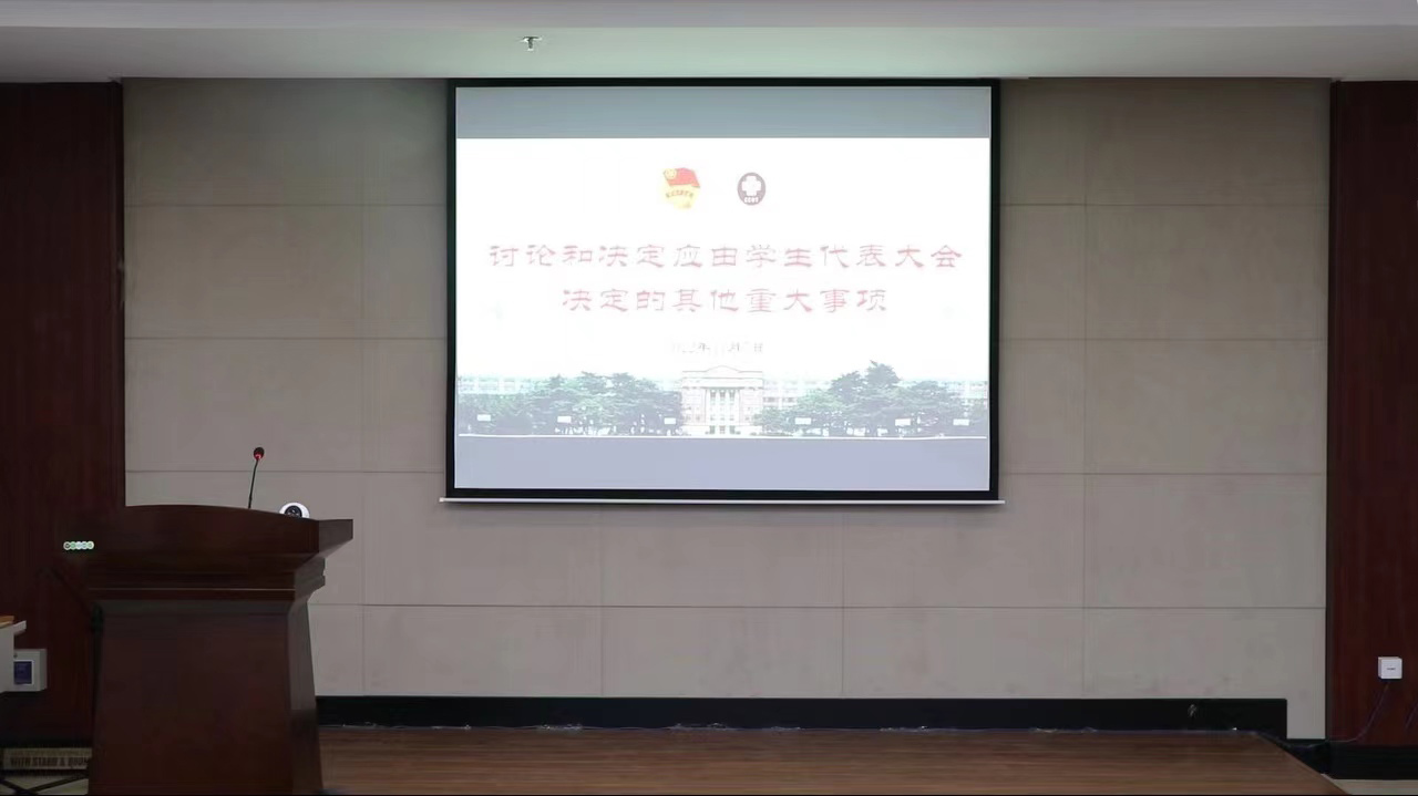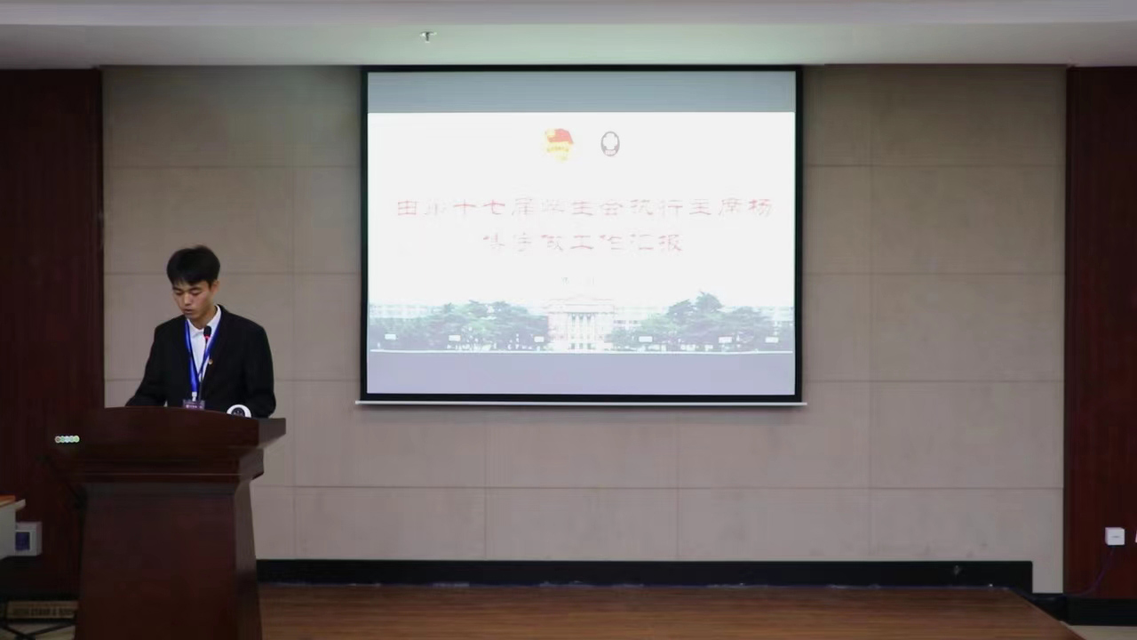 ①beat365唯一官网第十七届学生会执行主席杨博宇做工作报告