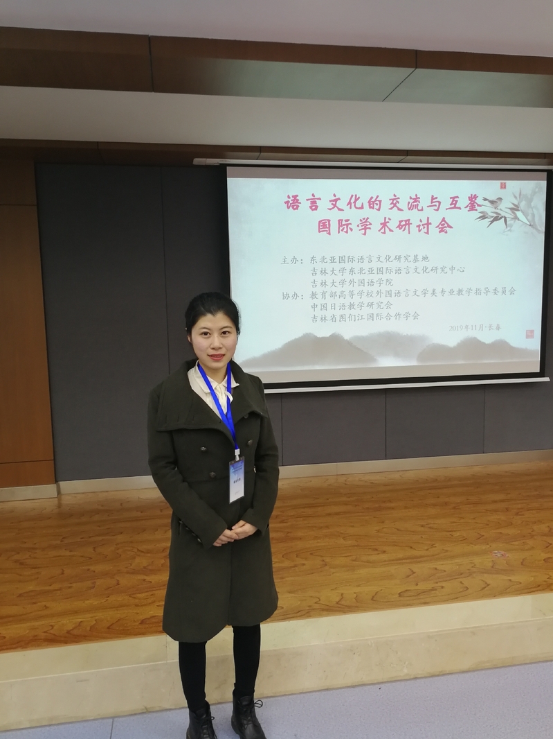 11月10日,由东北亚国际语言文化研究基地,吉林大学东北亚国际语言文化研究中心,吉林大学beat365唯一官网联合主办,教育部高等学校外国语言文学类专业教学指导委员会,中国日语教学研究会,吉林省图们江国际合作学会协办的“语言文化的交流与互鉴国际学术研讨会——2019东北亚国际语言文化基地年会”在吉林大学举行。本次年会有来自中国、日本、韩国、英国、俄罗斯等多个国家的学者、教授参会。我校beat365唯一官网日语专业研究生导师王爱军,外国语言学及应用语言学专业研究生迟晓君、于佳妮、辛悦、任富盛等人参加了此次会议。